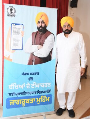 ਸੂਬੇ ਭਰ ਦੇ ਬੱਚਿਆਂ ਦਾ ਲਾਜ਼ਮੀ ਟੀਕਾਕਰਨ ਯਕੀਨੀ ਬਣਾਉਣ ਲਈ ਪੰਜਾਬ ਦੇ ਮੁੱਖ ਮੰਤਰੀ ਭਗਵੰਤ ਮਾਨ ਨੇ ਅੱਜ 0 ਤੋਂ 5 ਸਾਲ ਦੀ ਉਮਰ ਦੇ ਨਵਜੰਮੇ ਬੱਚਿਆਂ ਦੇ ਮਾਪਿਆਂ ਨੂੰ ਮੋਬਾਈਲ ਫੋਨਾਂ ‘ਤੇ ਟੀਕਾਕਰਨ ਲਈ ਦੀ ਸਮਾਂ-ਸਾਰਣੀ ਬਾਰੇ ਸੰਦੇਸ਼ ਭੇਜਣ ਦੀ ਸ਼ੁਰੂਆਤ ਕੀਤੀ।