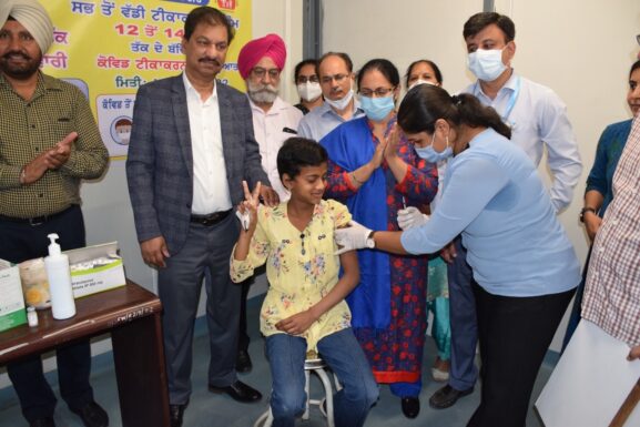 ਪੰਜਾਬ ਰਾਜ ਵਿੱਚ ਅੱਜ 12-14 ਸਾਲ ਉਮਰ ਵਰਗ ਲਈ ਕੋਵਿਡ ਟੀਕਾਕਰਨ ਮੁਹਿੰਮ ਦਾ ਰਸਮੀ ਉਦਘਾਟਨ ਪ੍ਰਮੁੱਖ ਸਕੱਤਰ ਸਿਹਤ ਅਤੇ ਪਰਿਵਾਰ ਭਲਾਈ ਸ੍ਰੀ ਰਾਜ ਕਮਲ ਚੌਧਰੀ ਨੇ ਸਿਵਲ ਹਸਪਤਾਲ ਮੁਹਾਲੀ ਵਿਖੇ ਆਯੋਜਿਤ ਰਾਜ ਪੱਧਰੀ ਸਮਾਗਮ ਵਿੱਚ ਕੀਤਾ।