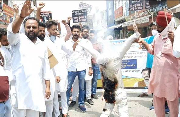 ਕੇਂਦਰ ਸਰਕਾਰ ਦੀ ਸਾੜੀ ਅਰਥੀ : ਪੈਟਰੋਲ ਡੀਜ਼ਲ ਦੀਆਂ ਕੀਮਤਾਂ ਘੱਟ ਕਾਰਨ ਦੀ ਕੀਤੀ ਮੰਗ